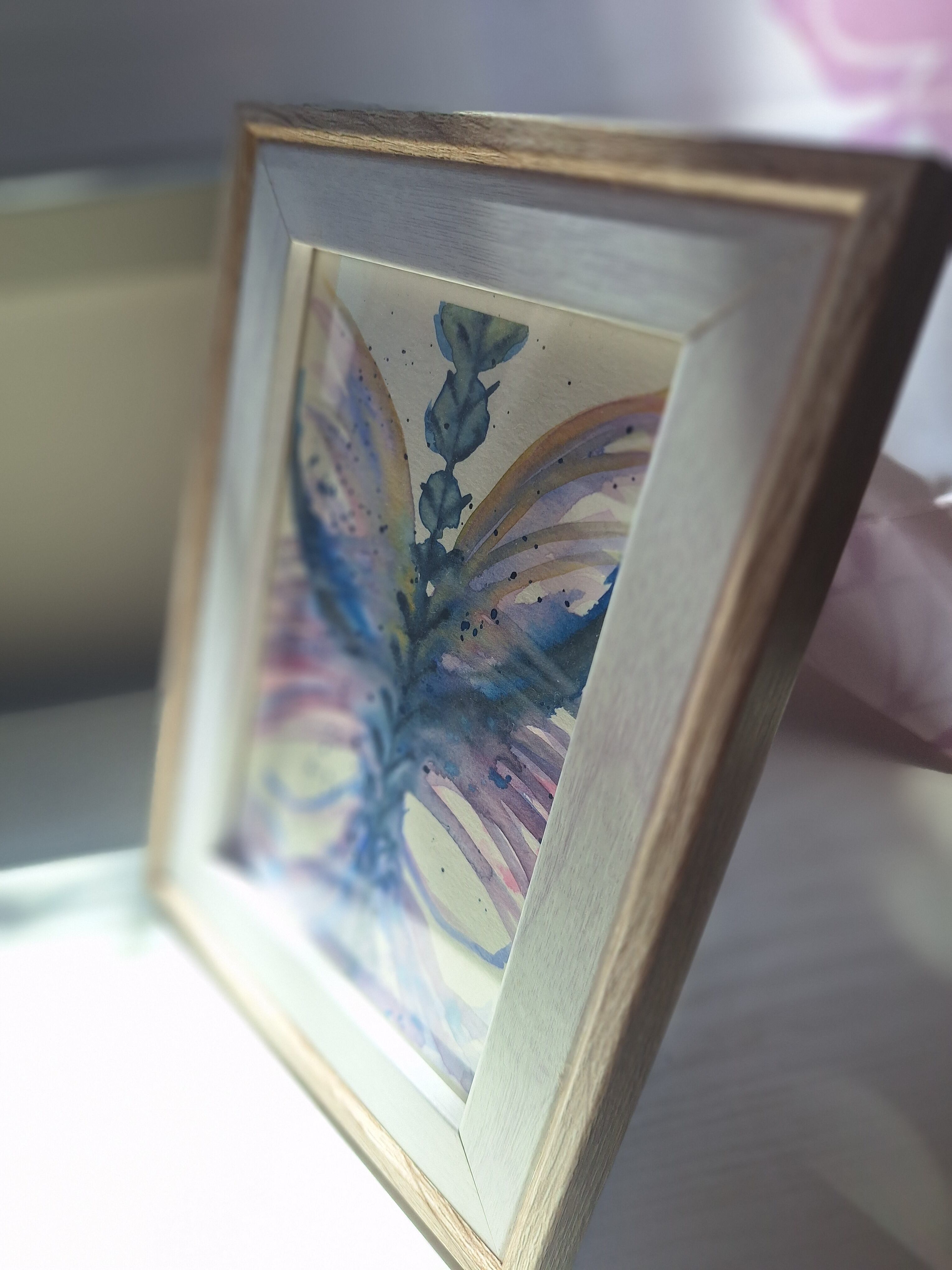 ポストカードサイズの原画には既製品の簡易的なフレームが付属します。
