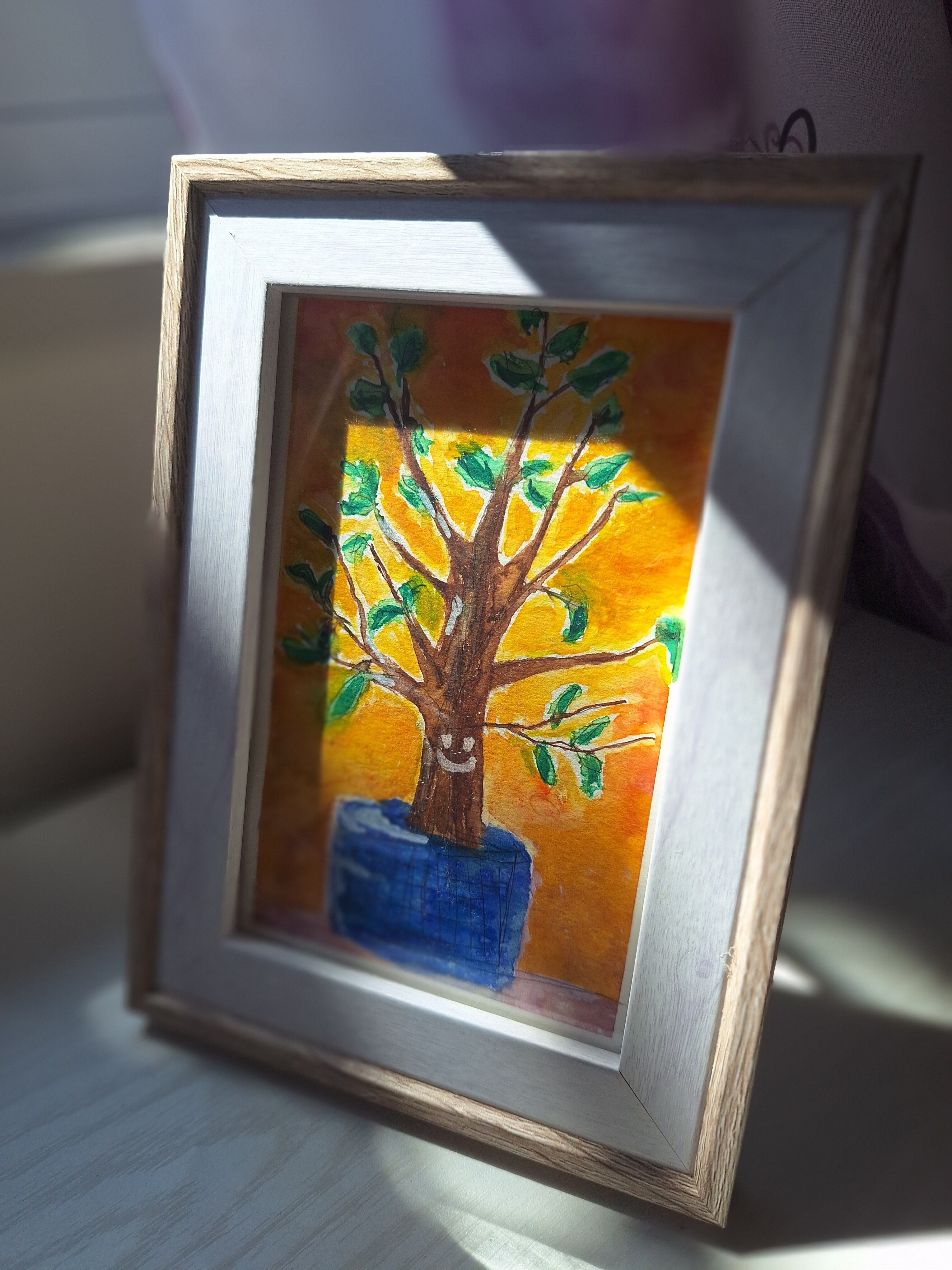 ポストカードサイズの原画には既製品の簡易的なフレームが付属します。