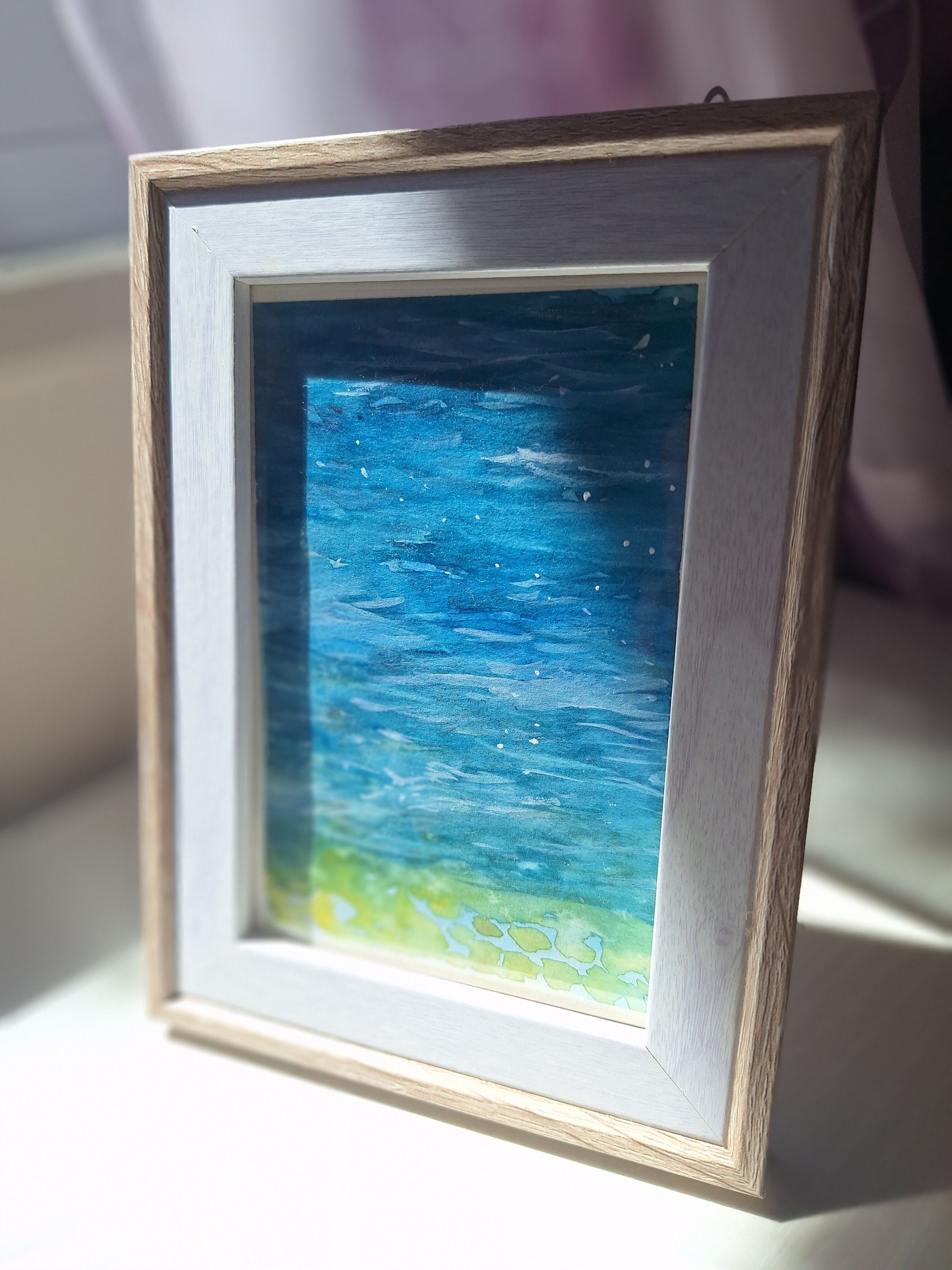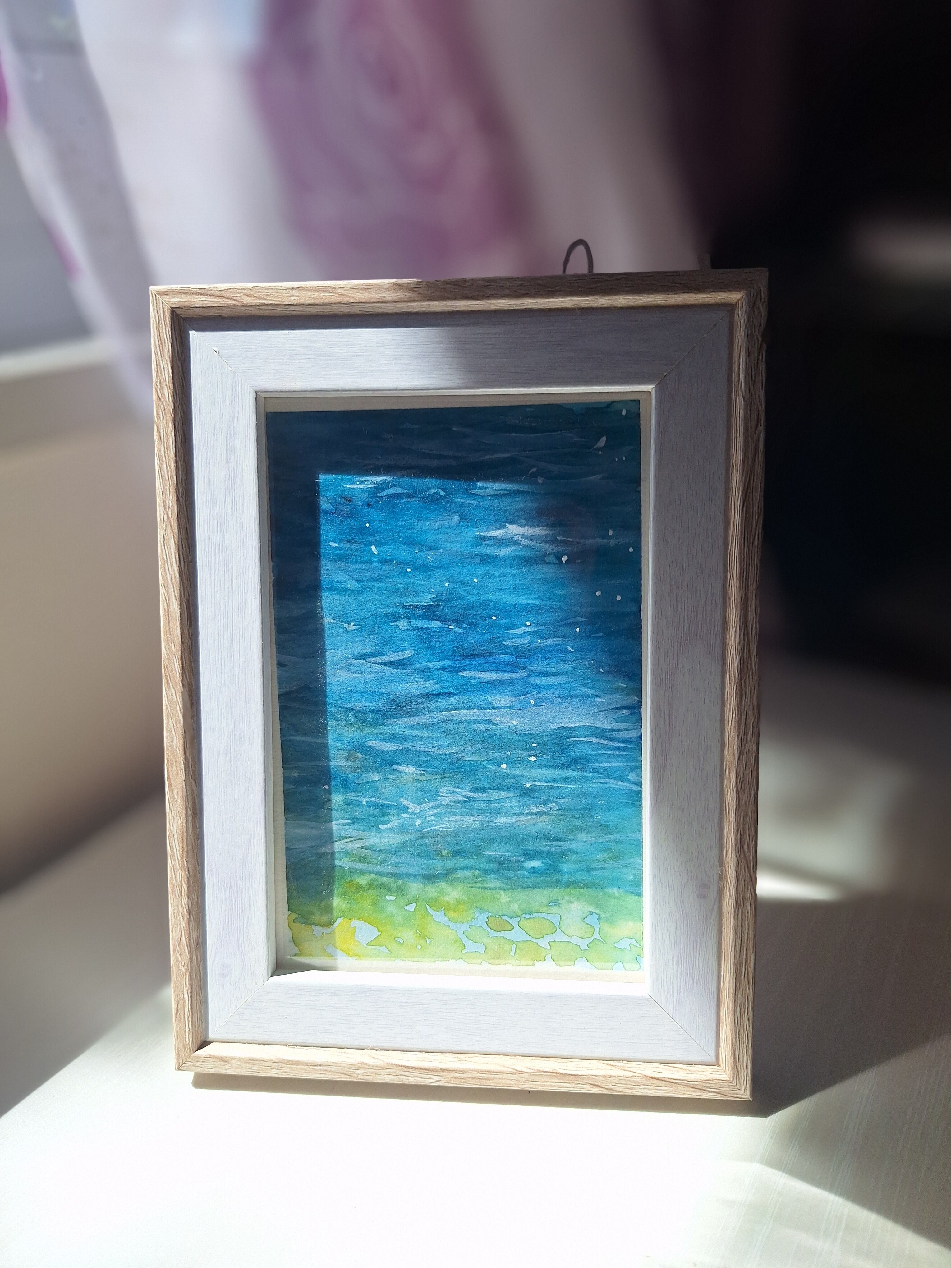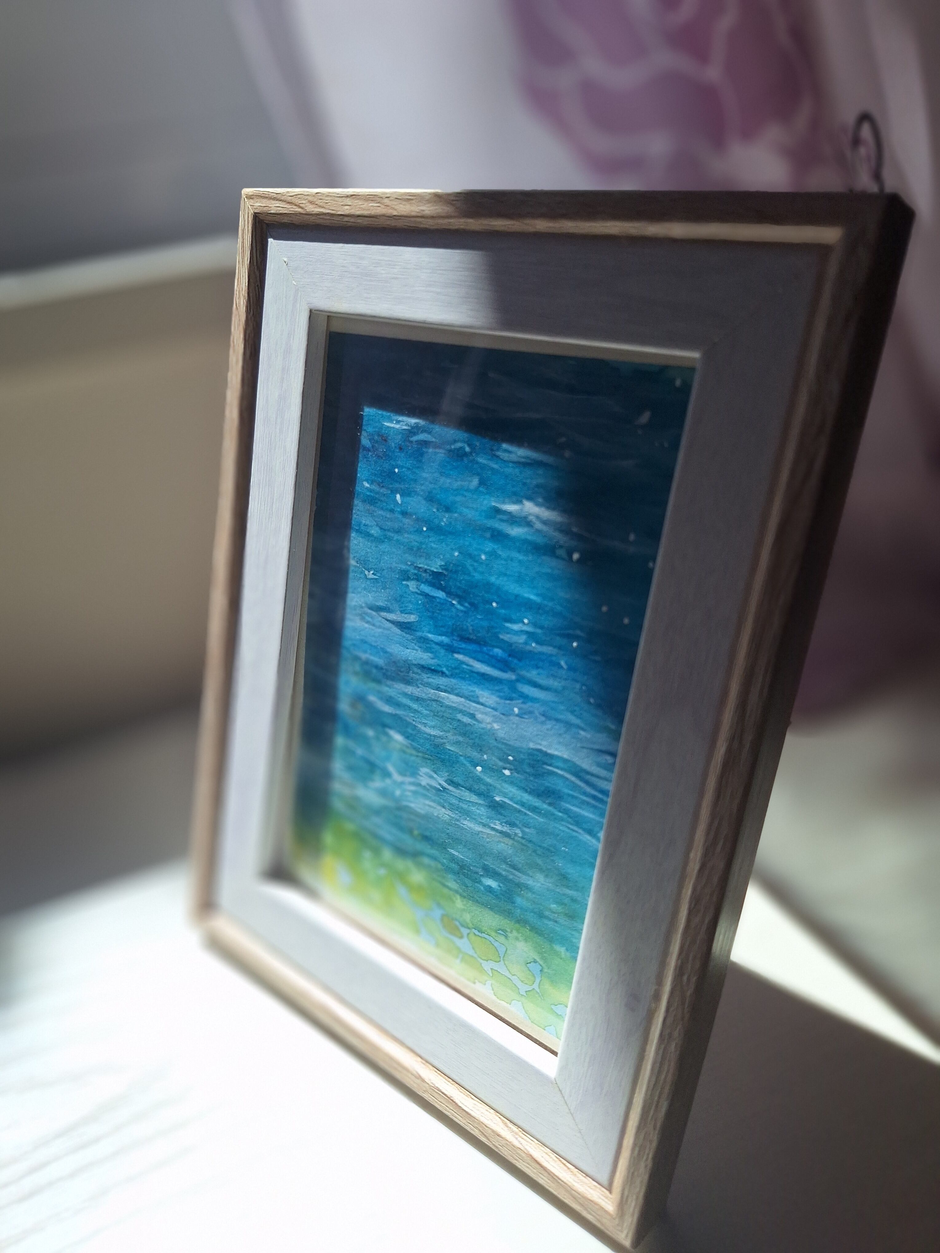 ポストカードサイズの原画には既製品の簡易的なフレームが付属します。