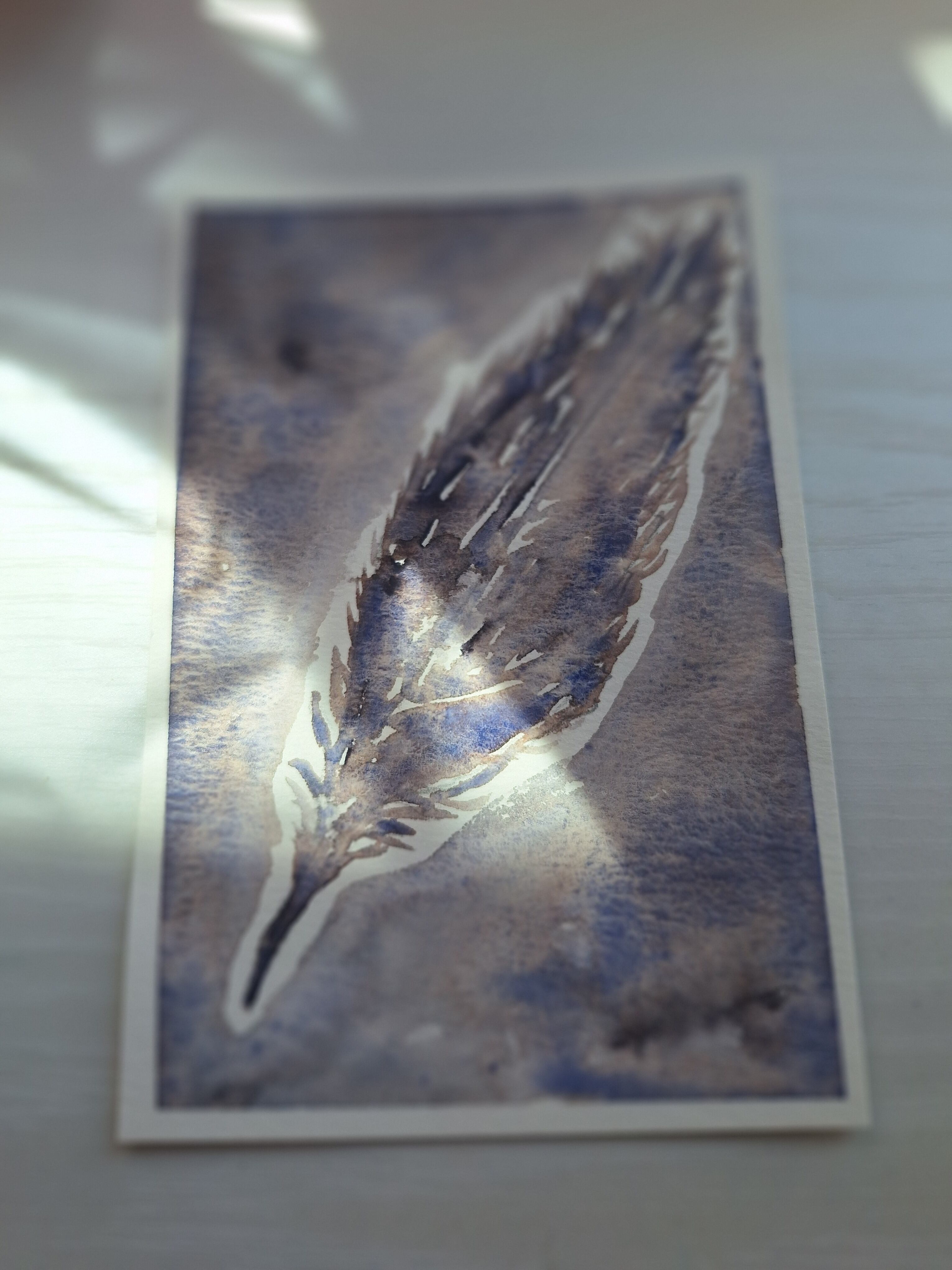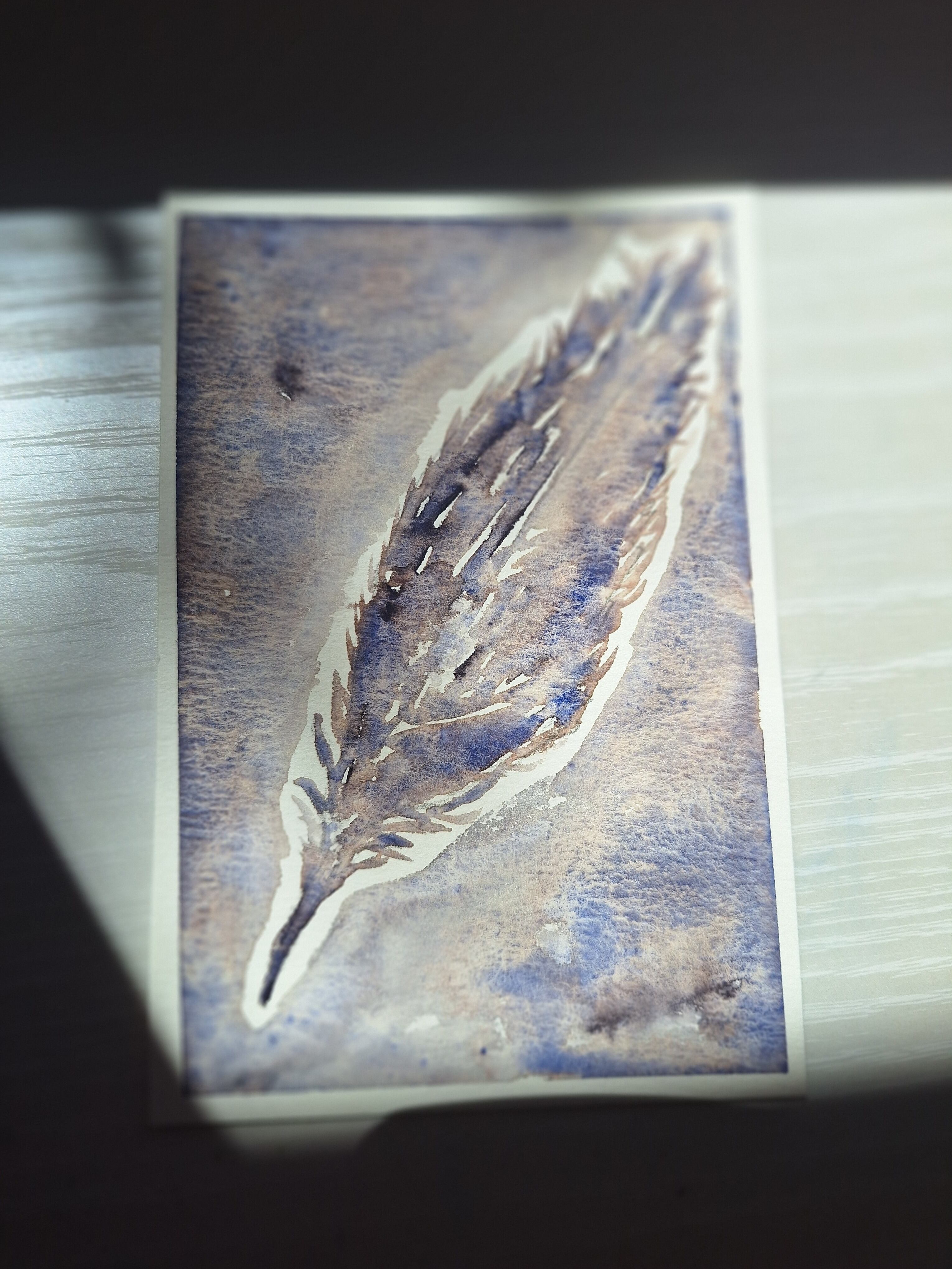 『雨夜の月で描いた羽根』|水彩画 原画(一点限り)