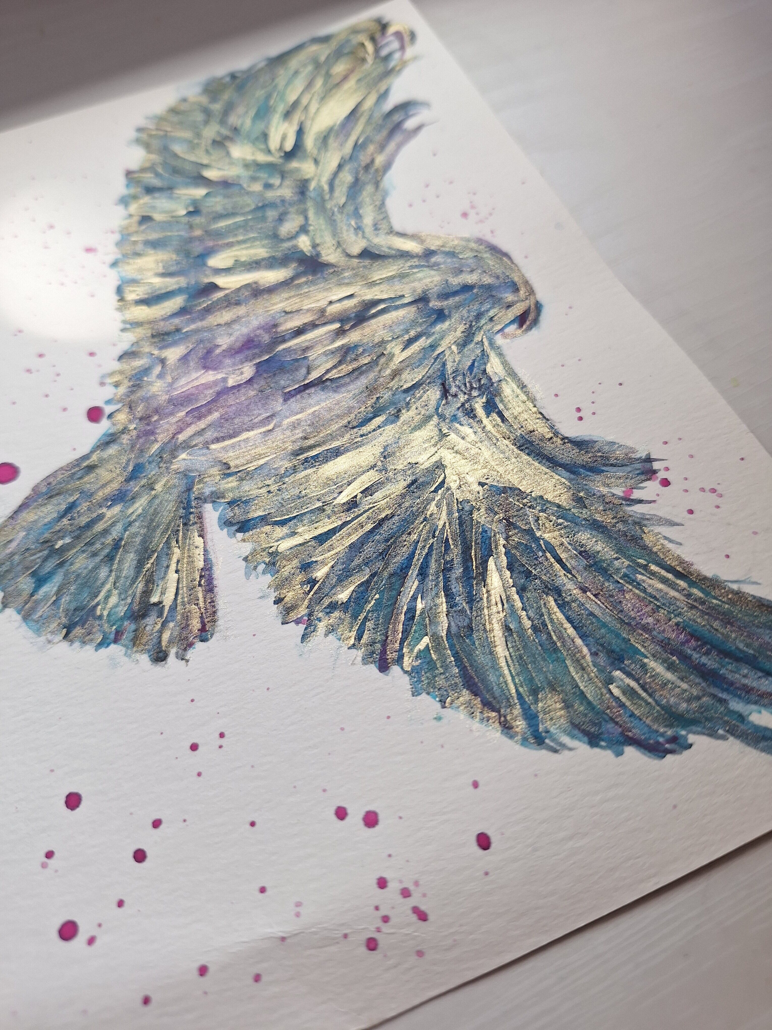 使用画材は水彩紙・透明水彩絵具・アクリル絵具。