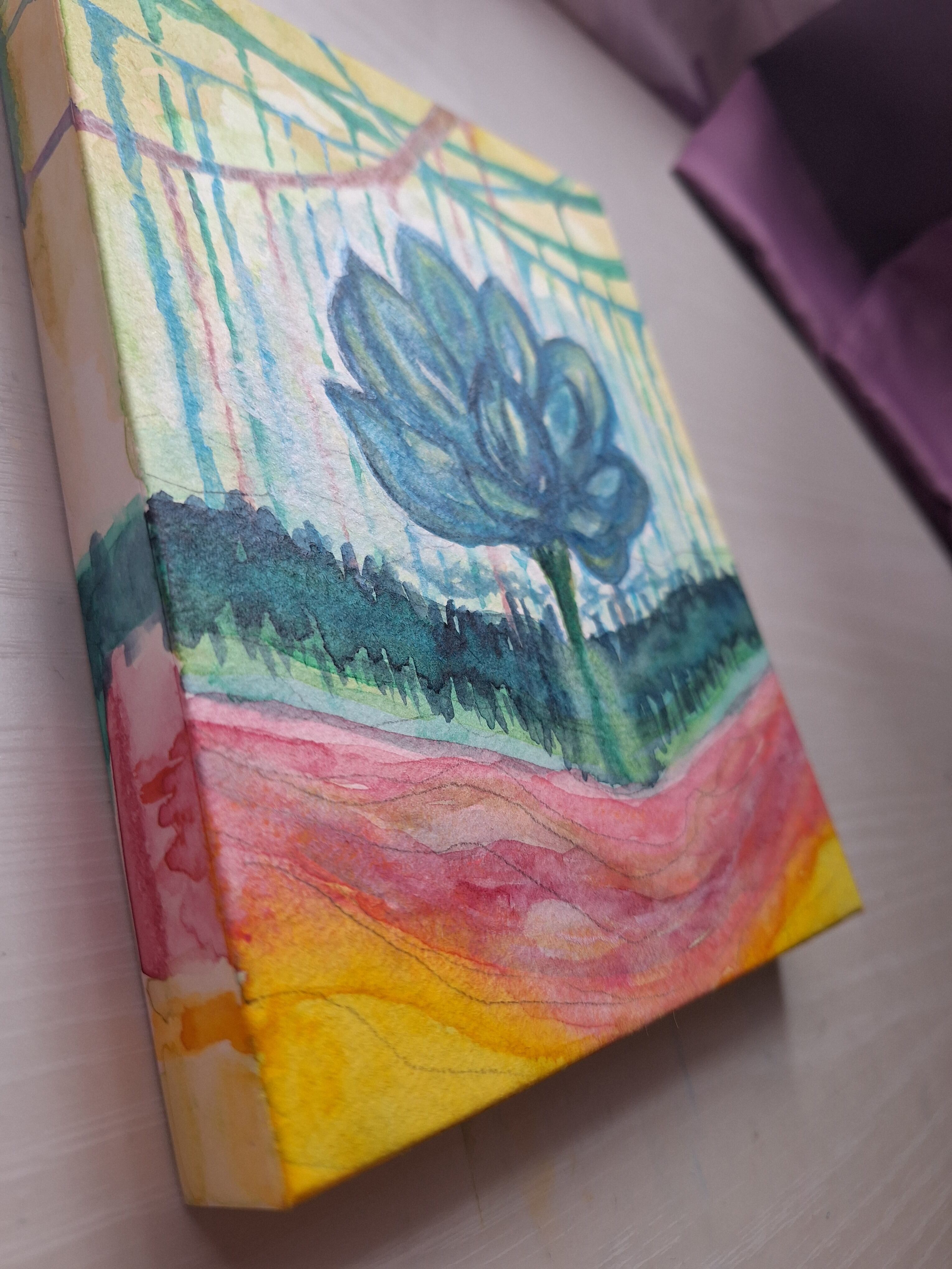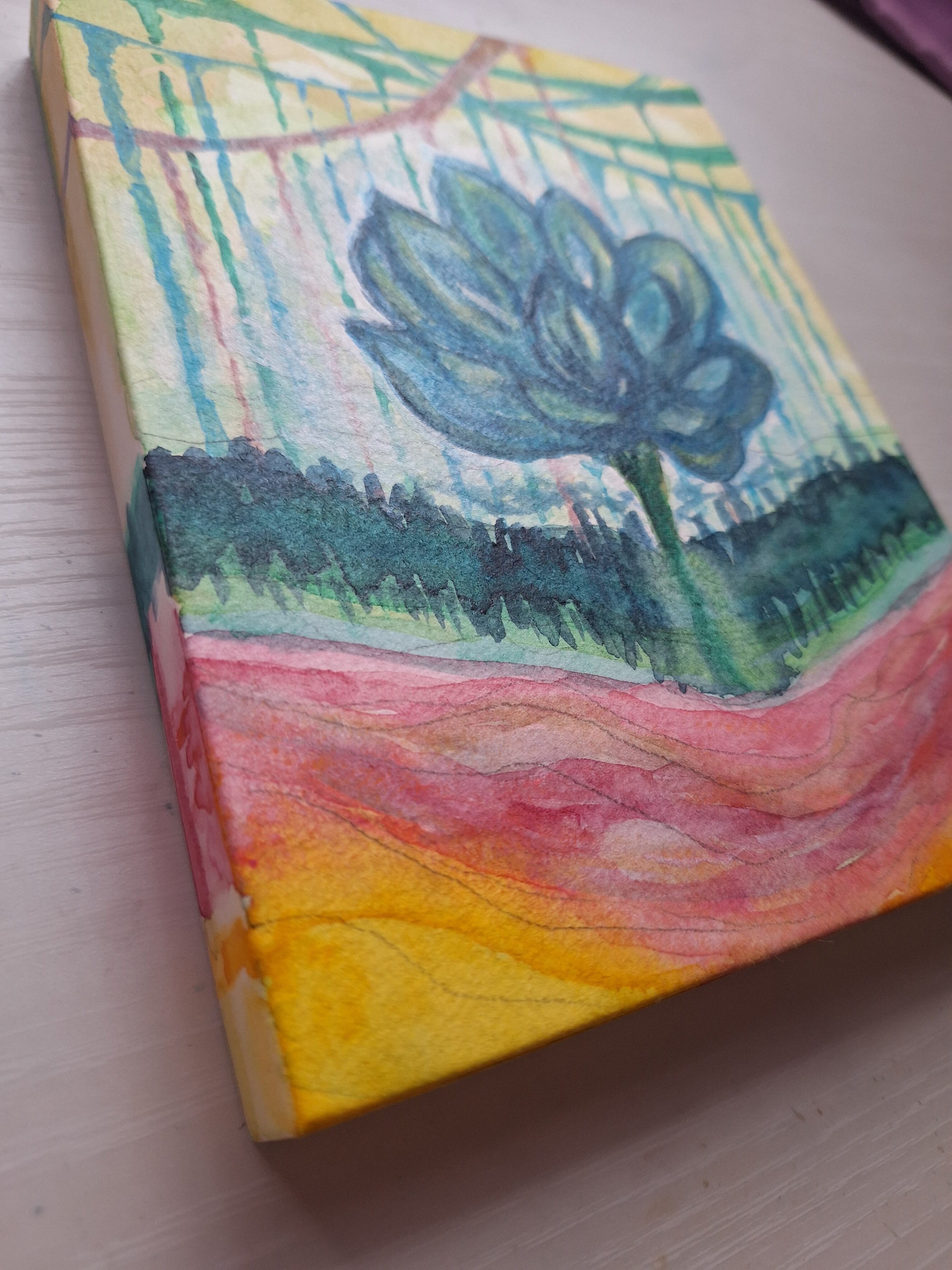 サイズはF0(約18×14cm)キャンバスで、手に取りやすいながらもしっかりと存在感のある大きさです。