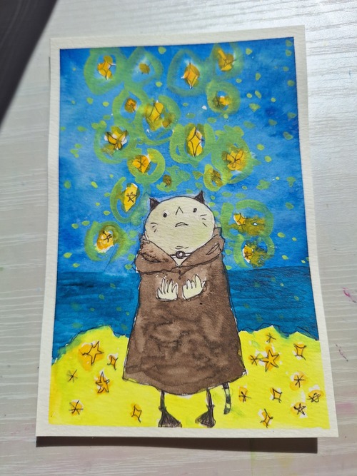 透明水彩で描いた、ポストカードサイズの原画です。