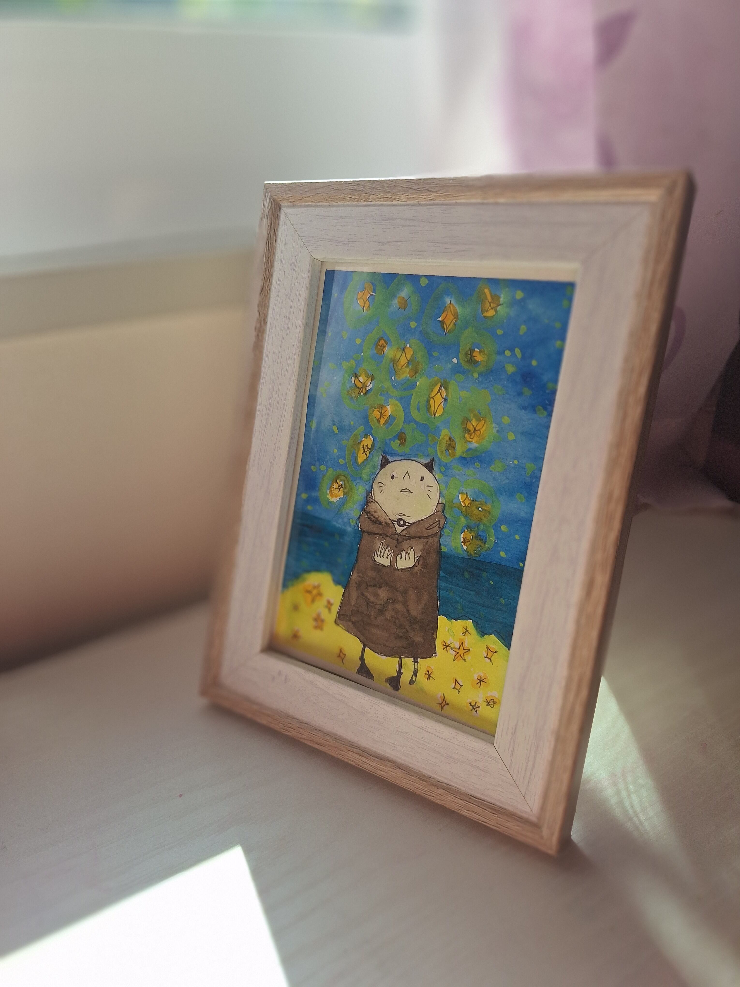 ポストカードサイズの原画には既製品の簡易的なフレームが付属します。