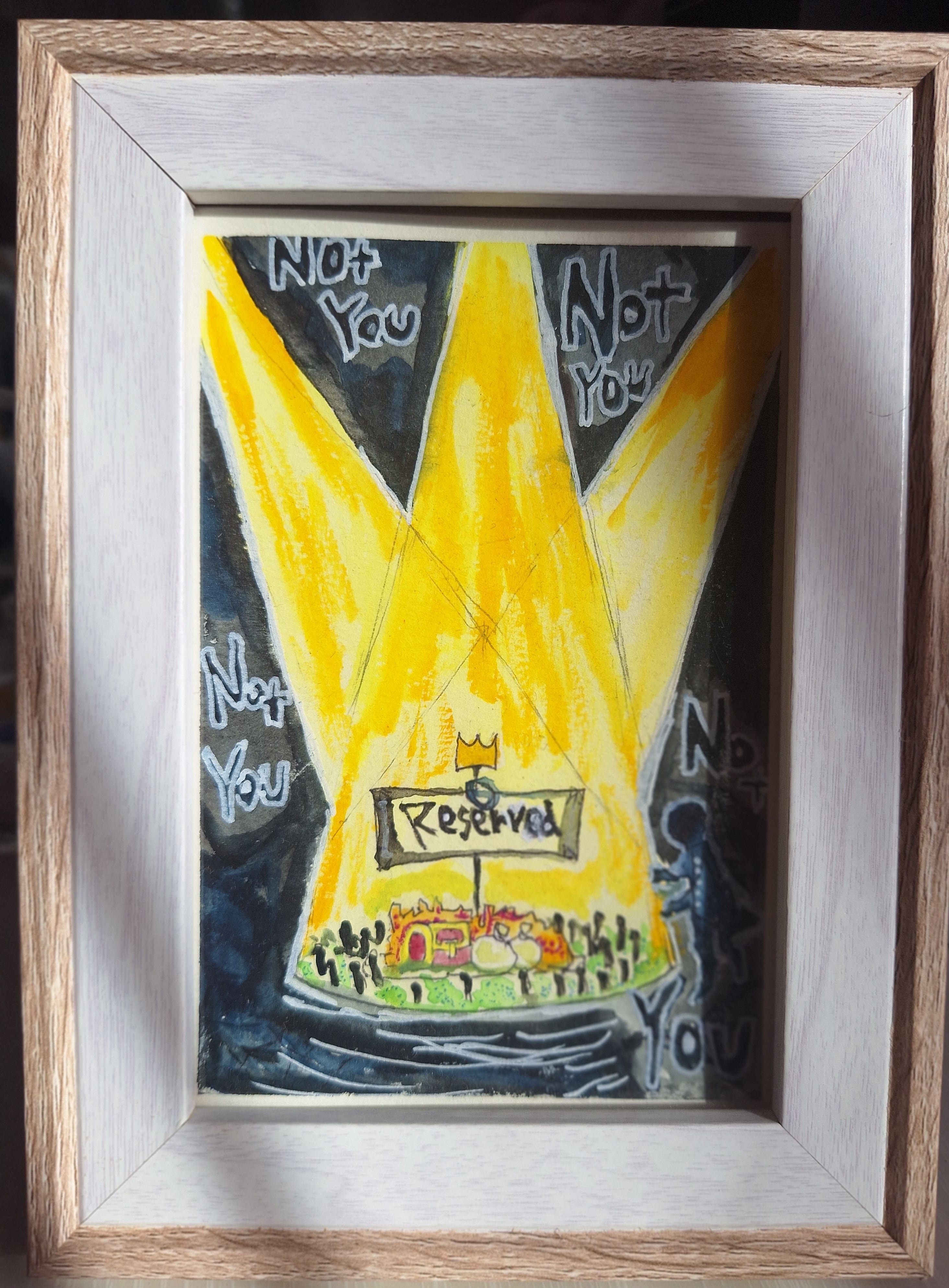 ポストカードサイズの原画には既製品の簡易的なフレームが付属します。